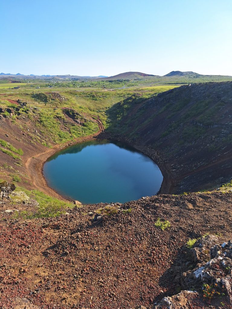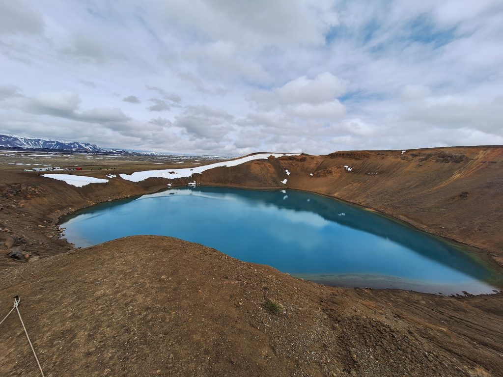Następnie odwiedziliśmy jezioro wulkaniczne Krafla, parking znajduję się tuż przy samym jeziorem. Jezioro zachwyca swoim kolorem. Można się przejść wokół krateru aby podziwiać jego piękno z kilku perspektyw.