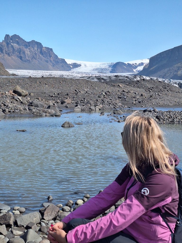 Kolejnym punktem był lodowiec Skaftafell. Zatrzymaliśmy się w Centrum turystycznym. Można tam znaleźć mapy tras, informacje o wycieczkach z przewodnikiem, toalety oraz małą kawiarnię. Parking jest przestronny, choć w sezonie potrafi się szybko zapełnić. Okolice Skaftafell to prawdziwy raj dla miłośników pieszych wędrówek. Znajdziesz tu zarówno krótkie, spacerowe trasy, jak i dłuższe szlaki prowadzące do spektakularnych punktów widokowych.