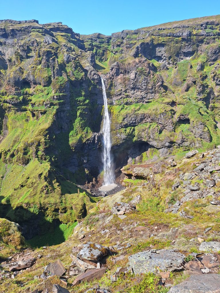 Wysiłek jednak w pełni się opłaca. Z punktu widokowego roztacza się niesamowita panorama – w dole rozciąga się kanion, otoczony ostrymi szczytami, z których spływają wodospady. W pogodny dzień kontrast zielonego mchu, czarnych skał i białej wody tworzy niemal nierealny obraz. To raj dla fotografów i wszystkich, którzy szukają autentycznego kontaktu z islandzką naturą.