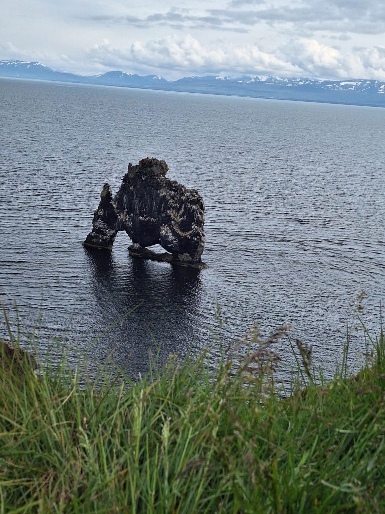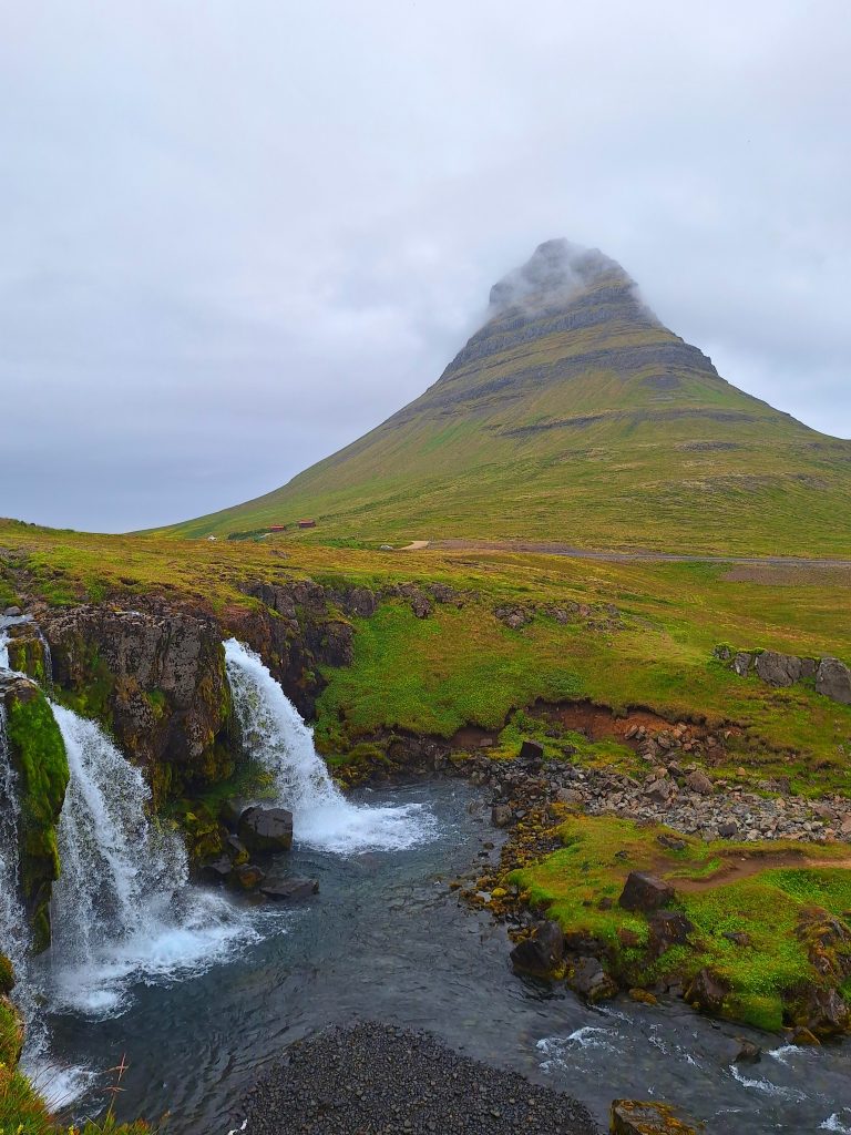 Pierwszym przystankiem była skała Hvitserkur, formacja skalna przypominająca nosorożca, która możemy oglądać ze zbocza urwiska. Obok urwiska można zejść na dół na plażę gdzie można zobaczyć foki. Foki były ale po drugiej stronie plaży. Tego dnia pogoda może nie była najgorsza ale też nie najlepsza, lekki deszcz, wiatr i zimno, dlatego nie zostaliśmy tam długo. Miejsce ok, ale nie powiedziałabym, że to obowiązkowy punkt Islandii. Następnie udaliśmy się na półwysep Snæfellsjökull i do jednego z najbardziej rozpoznawalnych miejsc Islandii, i fotogenicznych gór Islandii, która w pełni zasługuje na swoją reputację. Połączenie unikalnie ukształtowanego szczytu z pobliskimi wodospadami tworzy idealną scenerię, niemal surrealistyczną. Niezależnie od tego, czy oglądasz go w słońcu, we mgle, czy o północy, jest absolutnie zachwycający i stanowi obowiązkowy punkt na półwyspie Snæfellsnes. Nocleg na kempingu Snorrastaðir, który był położony na farmie z koniami. Spora kuchnia i duża wspólna przestrzeń z kanapami. Prysznice też w porządku.