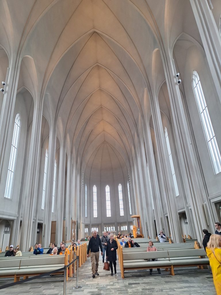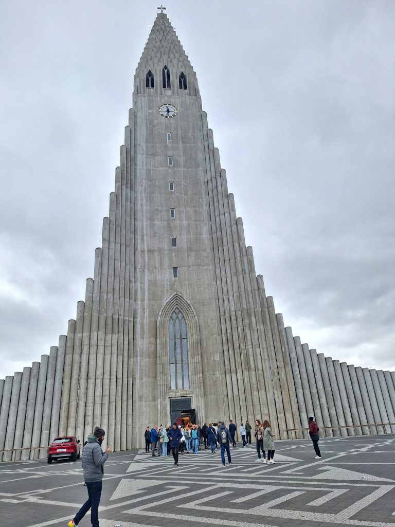 Nasz ostatni dzień, a w zasadzie pół dnia, gdyż wieczorem mieliśmy lot przeznaczyliśmy na poszwędanie się po stolicy Reykaviku. Zostawiliśmy samochód na parkingu przed uniwersytetem i ruszyliśmy do centrum miasta. Pierwszym przystankiem był kościół Hallgrímskirkja, ewangelicko-luterański kościół w Reyjkaviku. Z powodu swojego charakterystycznego wyglądu jest jedną z najpopularniejszych atrakcji i symbolem islandzkiej stolicy. Kościół zaprojektował w 1937 roku nieżyjący już architekt Guðjón Samúelsson. Na przykładzie Hallgrímskirkja doskonale widać, że artysta w swoich pracach często inspirował się fascynującymi kształtami i formami tworzonymi przez lawę. Wewnątrz kościoła znajdują się m.in. organy zaprojektowane i skonstruowane przez niemieckiego organmistrza Johannesa Klaisa z Bonn. Wysokie aż na 15 metrów i ważące 25 ton wydają imponujące dźwięki, w magiczny sposób wypełniające przestrzeń całej sali. Następnie udaliśmy się do centrum miasta, czyli ulicę Laugavegur, która razem z okolicznymi kwartałami stanowi centrum miasta. Ulica słynie z kolorowych domów, barów, sklepów i klubów, które tworzą unikatowy klimat. Spacer po Laugavegurze to idealny sposób na poznanie Reykjaviku. Można przejść całą ulicę w godzinę lub dwie, podziwiając drewniane budynki, galerie sztuki oraz liczne second-handy. Laugavegur to także miejsce tętniące życiem towarzyskim. Debiutowali tu Björk, Sigur Rós czy GusGus. Znajdują się tu liczne sklepy z lokalnymi pamiątkami, biżuterią, odzieżą.