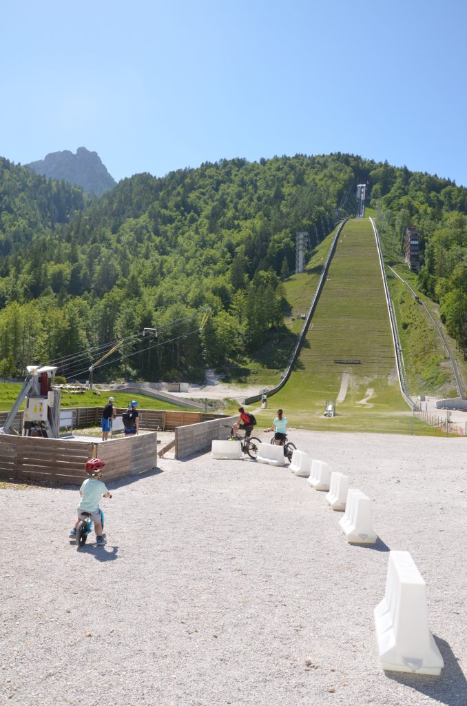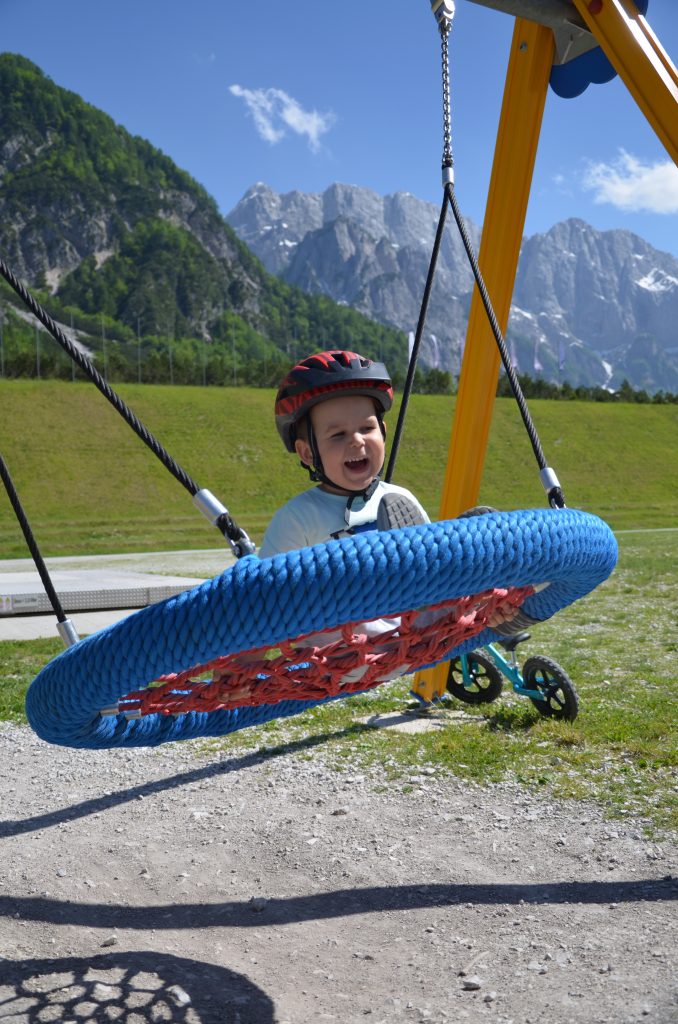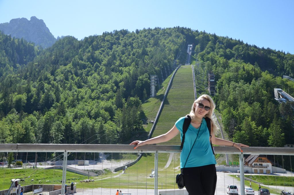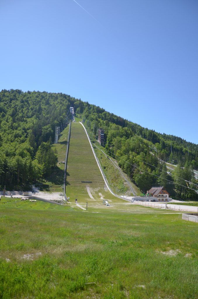Tuż obok Kranjskiej Gory znajduje się Planica. Znają ją prawdopodobnie wszyscy – chyba każdy choć raz w życiu oglądał zawody o Puchar Świata w skokach narciarskich. W Planicy znajduje się kompleks 7 skoczni. Jedna z nich klasyfikowana jest jako skocznia mamucia. Ma wielkość 240 m i jest drugą, największą skocznią na świecie. Przyznajemy szczerze – nie jesteśmy jakimiś ogromnymi fanami skoków, ale skocznie robią wrażenie, zwłaszcza ta najwyższa. Obok skoczni znajdował się też mały plac zabaw i sklepik z pamiątkami.
