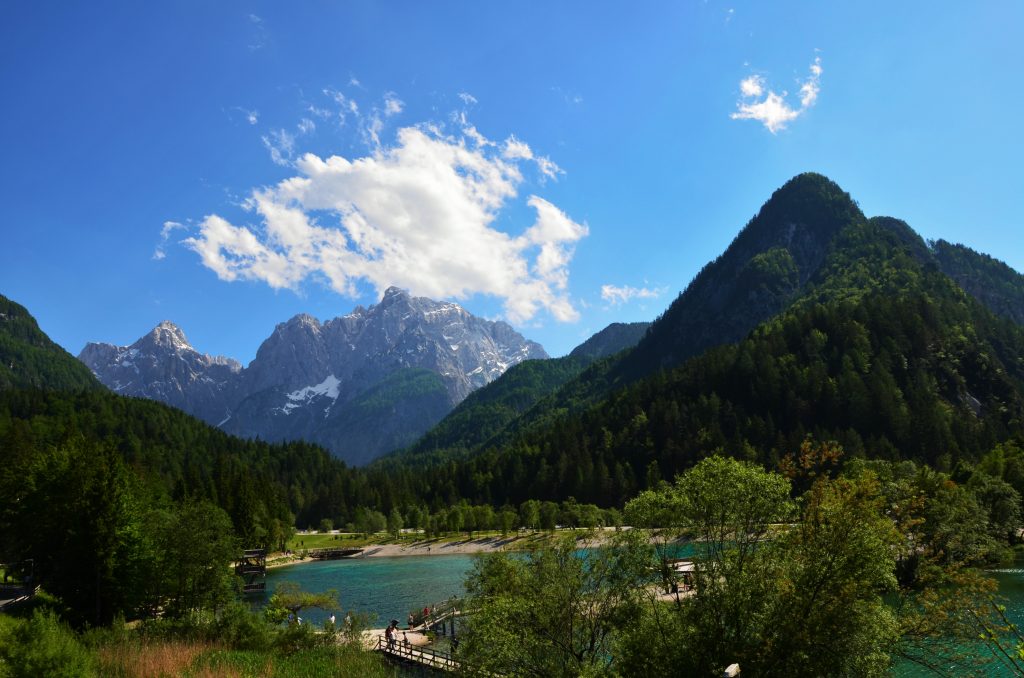 Kranjska Gora to jedno z najpopularniejszych miejsc turystycznych w Słowenii, położone w północno-zachodniej części kraju, w Alpach Julijskich, blisko granicy z Austrią i Włochami. Jest to znany ośrodek narciarski i doskonała baza wypadowa do pieszych wędrówek, kolarstwa górskiego i innych aktywności na świeżym powietrzu. Kranjska Gora, to dobre miejsce na zorganizowanie ciekawej objazdówki pośród Alp Julijskich. Właśnie tutaj nocowaliśmy. Najładniejszym punktem tej miejscowości jest jezioro Jasna, składa się z dwóch połączonych ze sobą sztucznych jezior u zbiegu strumieni Velika i Mala Pišnica . To krystalicznie czyste jezioro, otoczone gęstymi lasami i majestatycznymi szczytami gór, jest idealnym miejscem na relaks i wypoczynek. Woda w jeziorze jest tak przejrzysta, że można dostrzec ryby pływające w jego głębinach. Jest to doskonałe miejsce do kąpieli, wędkowania czy też kajakarstwa Znajduje się tu kilka pomostów, a także platforma widokowa. Nad samym jeziorem znajduje się strefa gastronomiczna. Z brzegu Jasnej można podziwiać dumnie stojące w oddali Alpy Julijskie. Wokół jeziora znajdują się ścieżki spacerowe.
