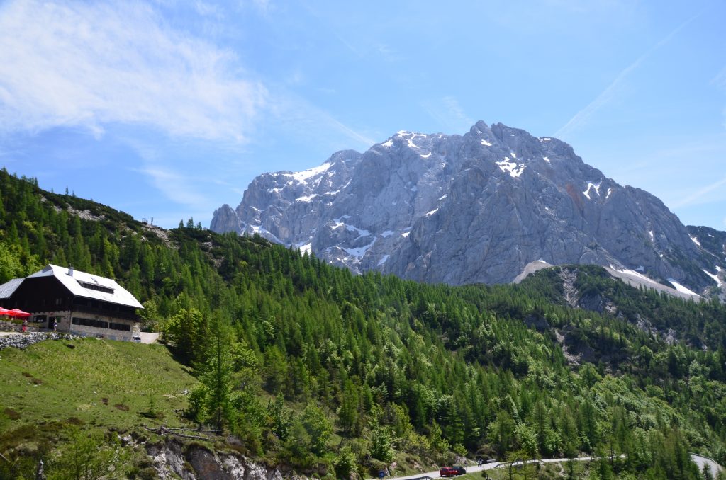 W drodze na Vršič, można odpocząć w jednej z górskich chat, w których wypijecie np. kawę albo lokalne piwo.